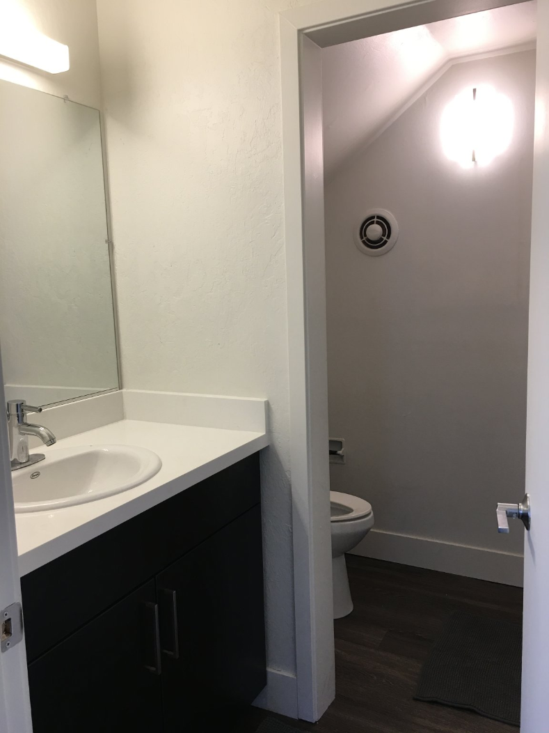 - Fully remodeled bathroom with new vanity, tub, and shower surround.