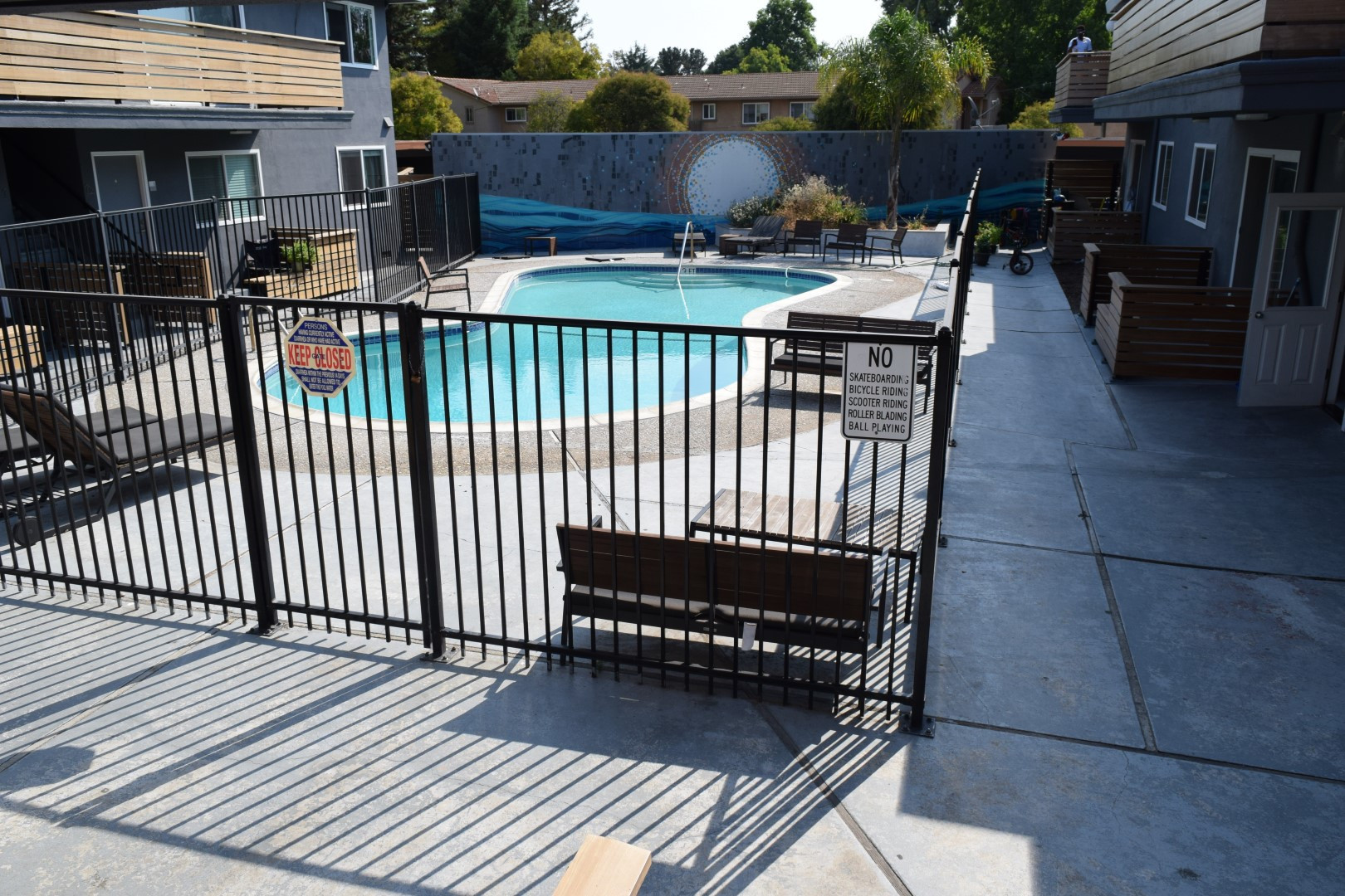 - Sparking swimming pool with hand painted backdrop