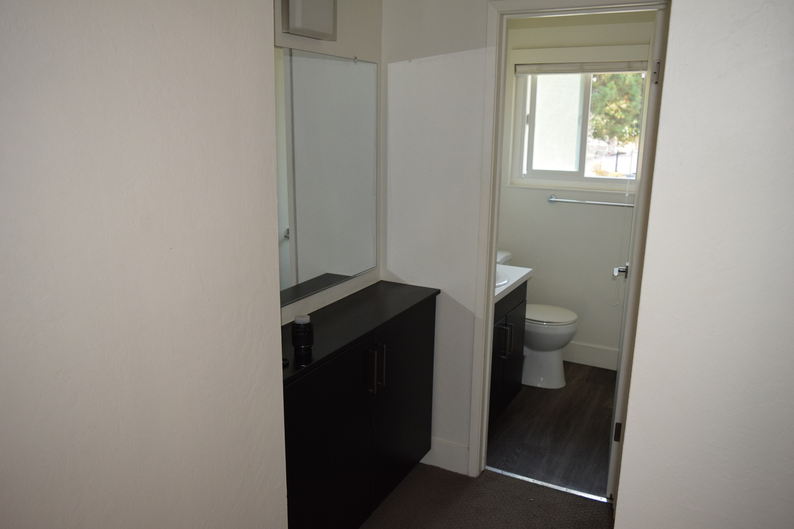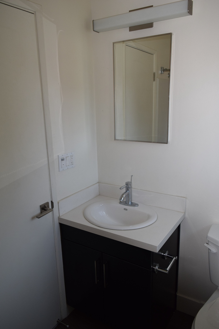 - Fully remodeled bathroom with new vanity, tub, and shower surround.