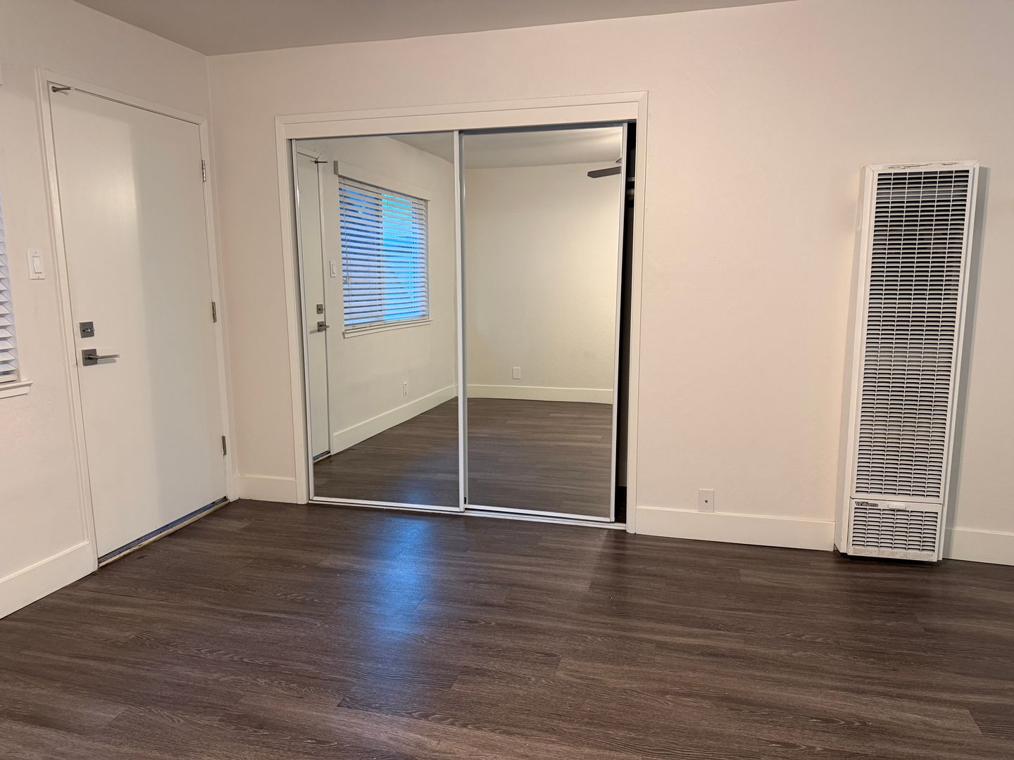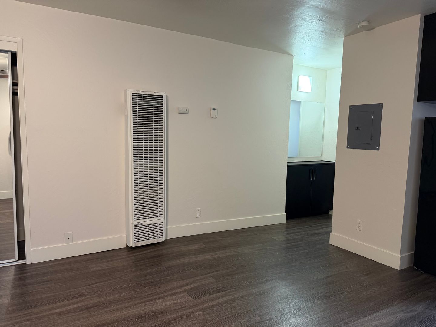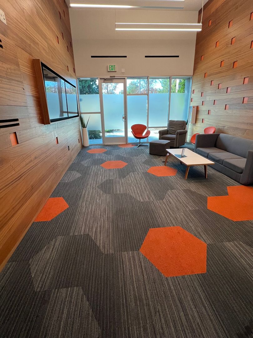 - Combination LVT wood flooring and designer carpet.